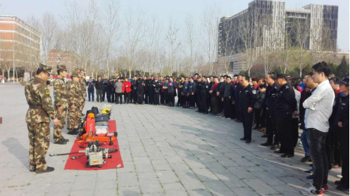 参训人员首先观看了高层建筑火灾现场视频。随后,消防官兵又围绕防火安全的重要意义、人员密集场所和高层建筑的防火要点、初期火灾的扑救、室内消防设施使用、正确逃生自救等内容进行了生动讲解。按照活动安排,消防支队官兵在文化广场展示了新型灭火设备,并进行使用方法演示。