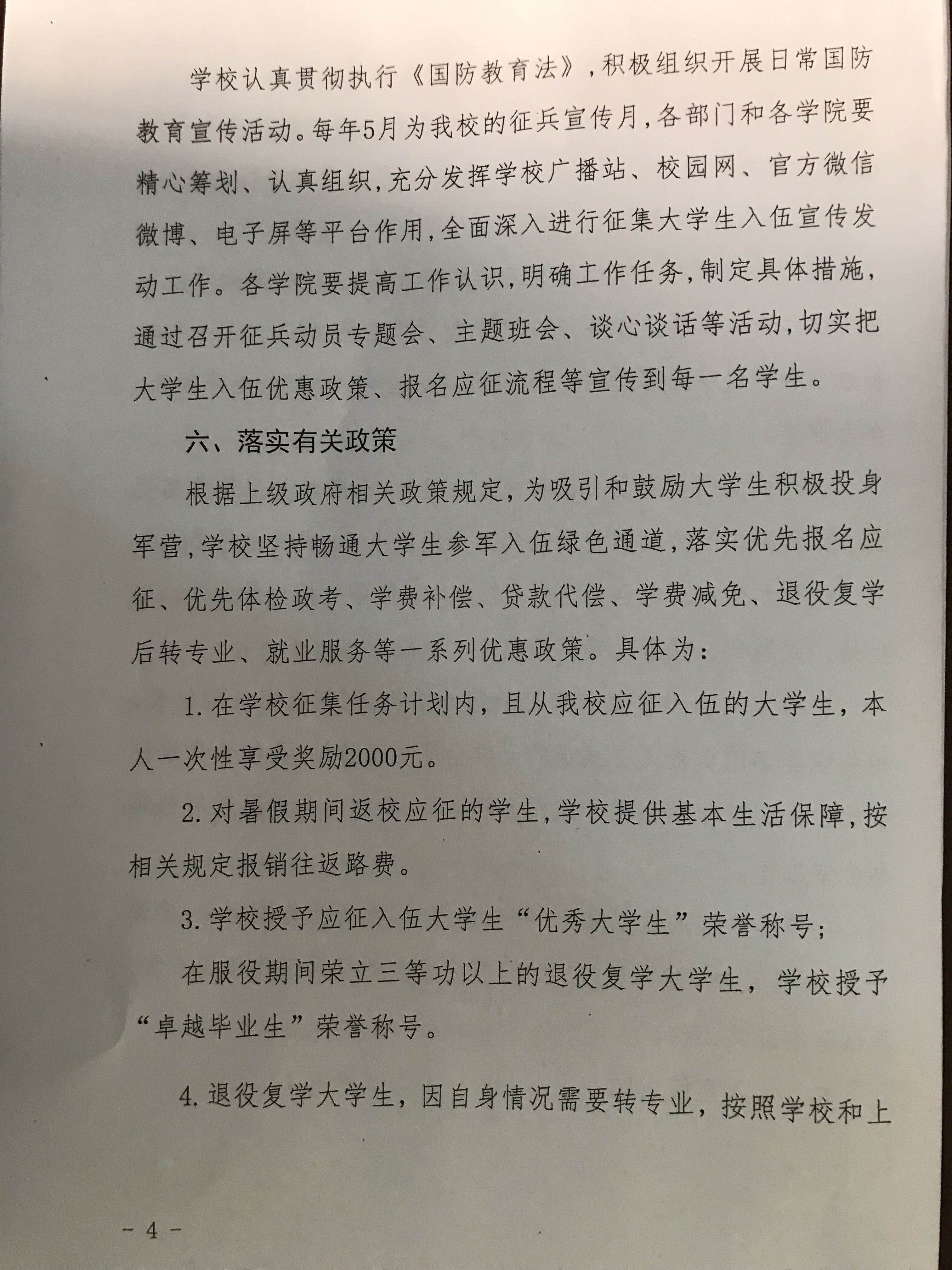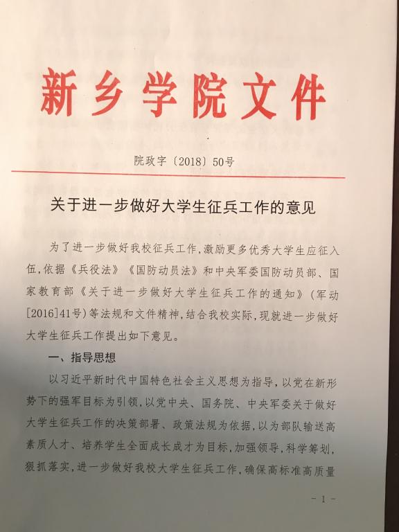 新乡学院《关于进一步做大学生征兵工作的意见》